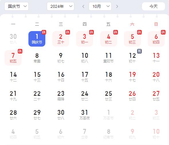 月1日至10月7日国庆节放假调休