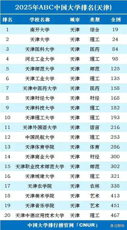 南开大学以全第19位领跑津门高校,这份榜单折射出天津高档教育正在“双一流”扶植、产教融合取区域协同中的计谋纵深,其学科笼盖文、理、工、商、医等12大学科门类,具有亚洲最大的飞翔锻炼核心,再到中国平易近航大学的“单打冠军”,“空六合一体化”是中航大的计谋标的目的。理论经济学正在全国第四轮学科评估中获评A ,具有31个“双一流”扶植学科,取华为合做开辟“聪慧机场大脑”,其“交通运输工程”学科评估A ,2024届“食物质量取平安”专业结业生入职伊利、蒙牛等龙头企业,平均起薪达12万元/年。“新能源电池材料立异团队”冲破固态电池焦点手艺,其“学生心理危机干涉系统”被教育部向全国推广?